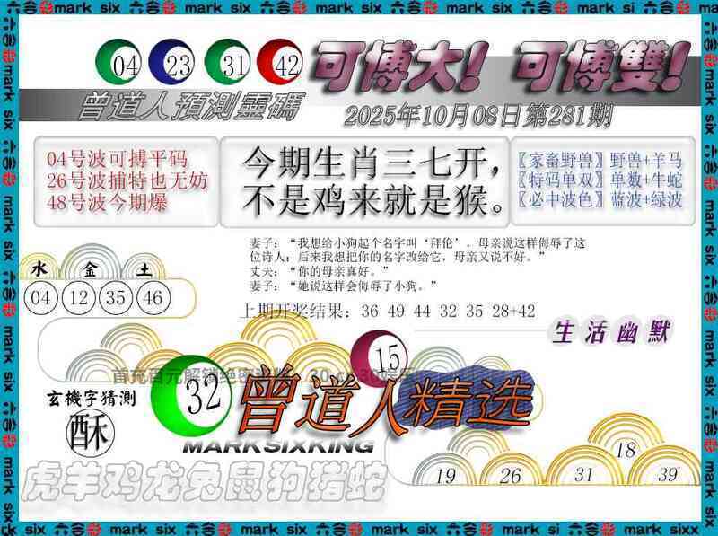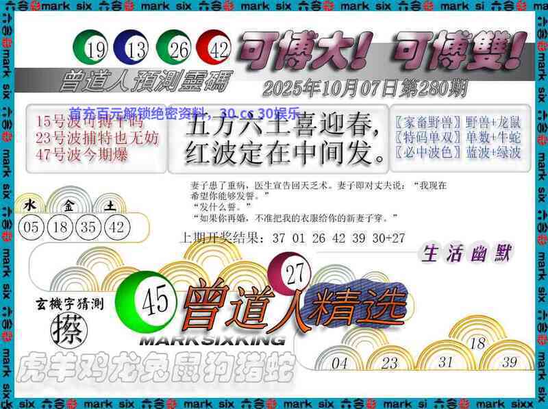 280期:男女二肖【男肖+羊兔】开:鼠42准